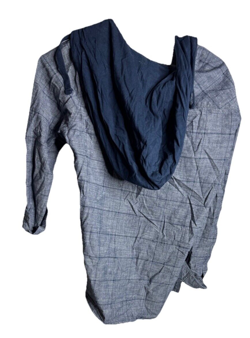Authentic Work Worn Garments Shirt With Hood Mens Small Gray Striped Button Up