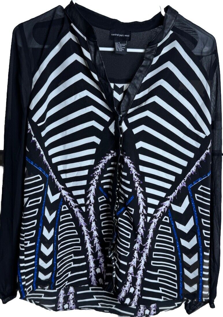 Central Park West Top Womens Size Small Embroidered Linen Blend Shirt Blouse