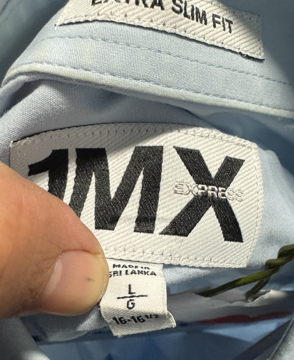 Express 1MX Men's Dress Shirt Large Slim Fit Button-Up Long Sleeve 16-16.5