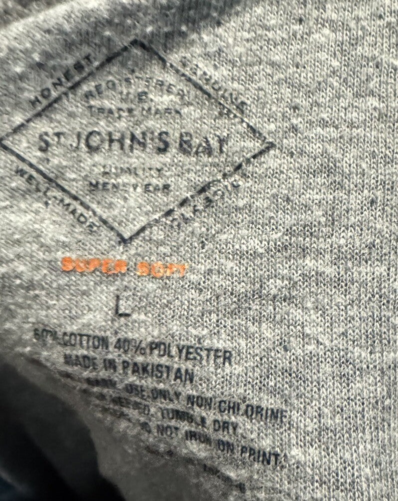 St Johns Bay Shirt Men Large Blue Sueded Henley Knit Outdoor Long Sleeve